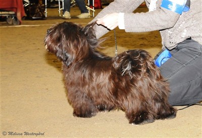 Mycket lovande hanvalp. Utmärkt helhet. Utmärkt huvud. Vackra ögon. Väl ansatta öron. Utmärkt front och skuldra. Normala vinklar bak. Härlig utväxt päls för åldern. Rör sig och visar sig utmärkt. 1 HP 1, BIM